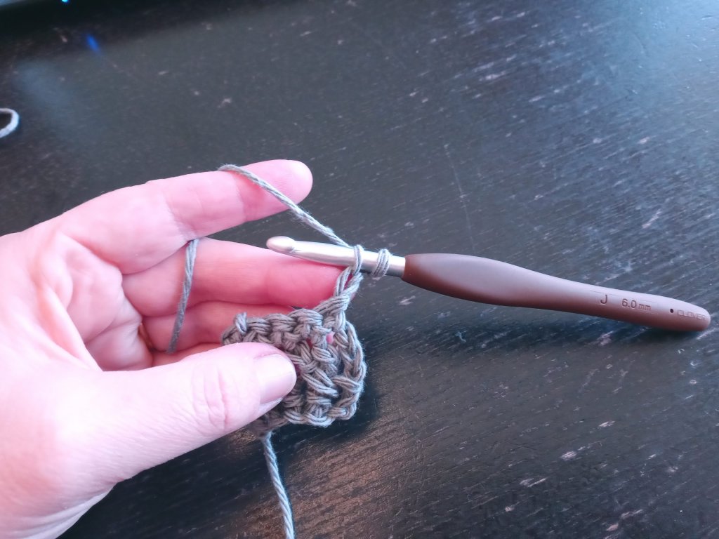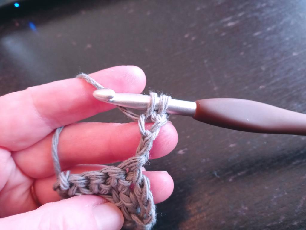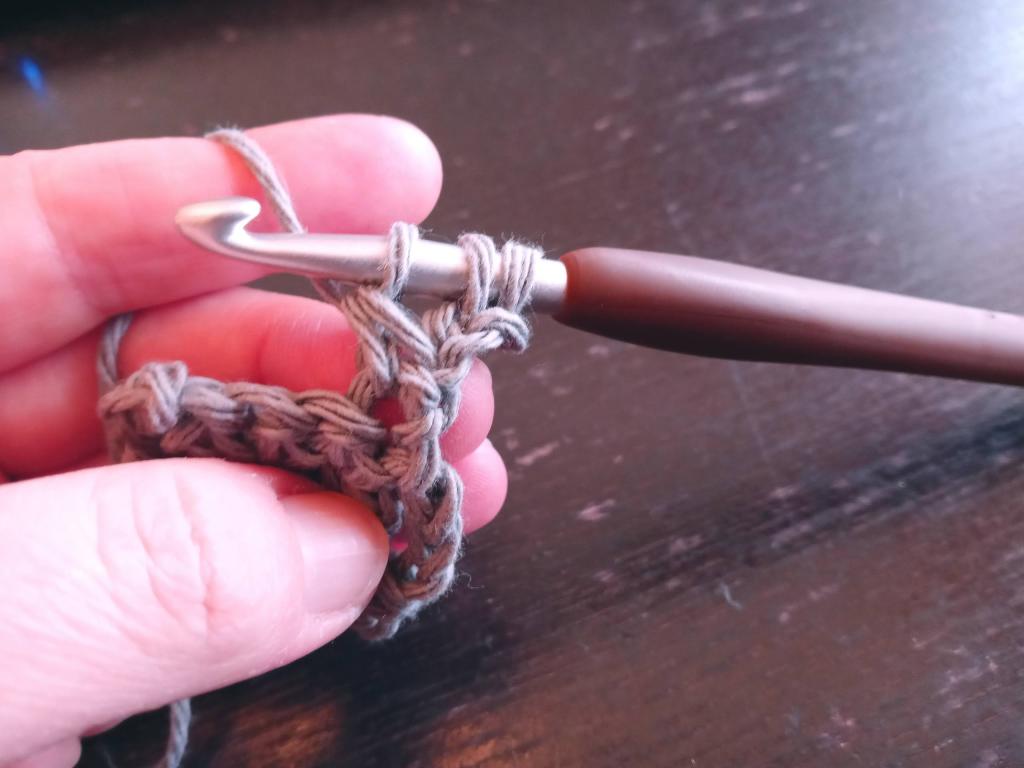 Step 4: Insert hook into next chain, pull up a loop (3 loops on hook).