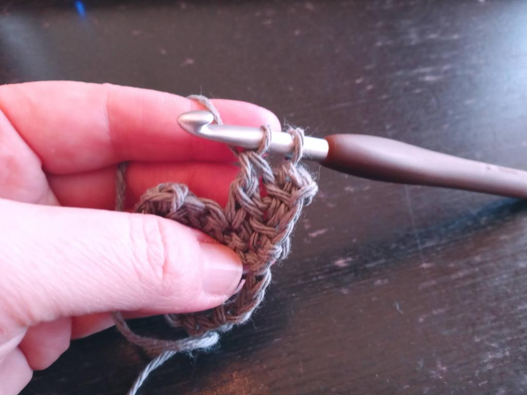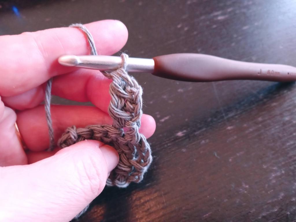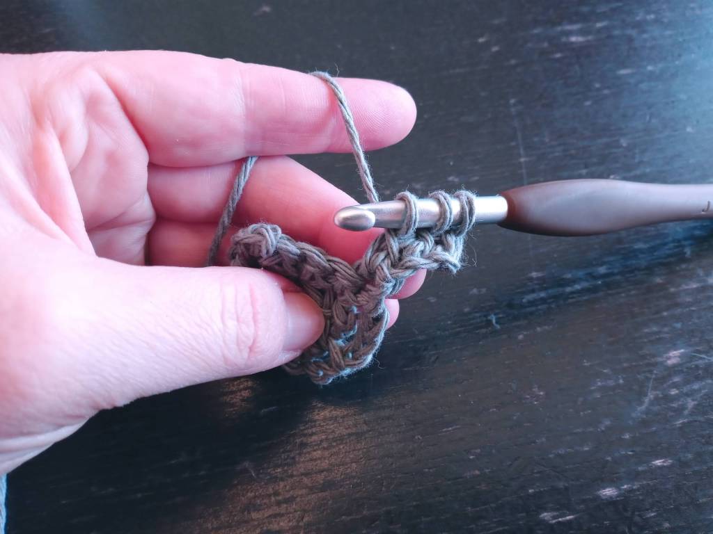 Step 11: Insert hook into next sc, pull up a loop (4 loops on hook).
