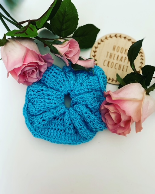 I am sharing the basic crochet instructions for the Rose Scrunchie below but if you would like access to the herringbone half double crochet tutorial and step by step instructions on how to enclose the hair elastic within the scrunchie, I have included both in the paid pattern pdf which is available in my Ravelry store! Enjoy!