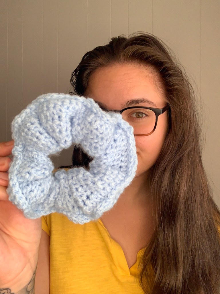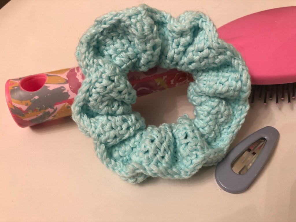 The Herringbone Half Double Crochet stitch gives such lovely texture and is even more fun when worked in the round! After looking at my completed scrunchie, I immediately thought of a whimsical little girl that I taught several years ago. So it’s only fitting that I would name this scrunchie after her. Rose is not so little anymore but I imagine if I asked her mother, she would say that she still loves to twirl!