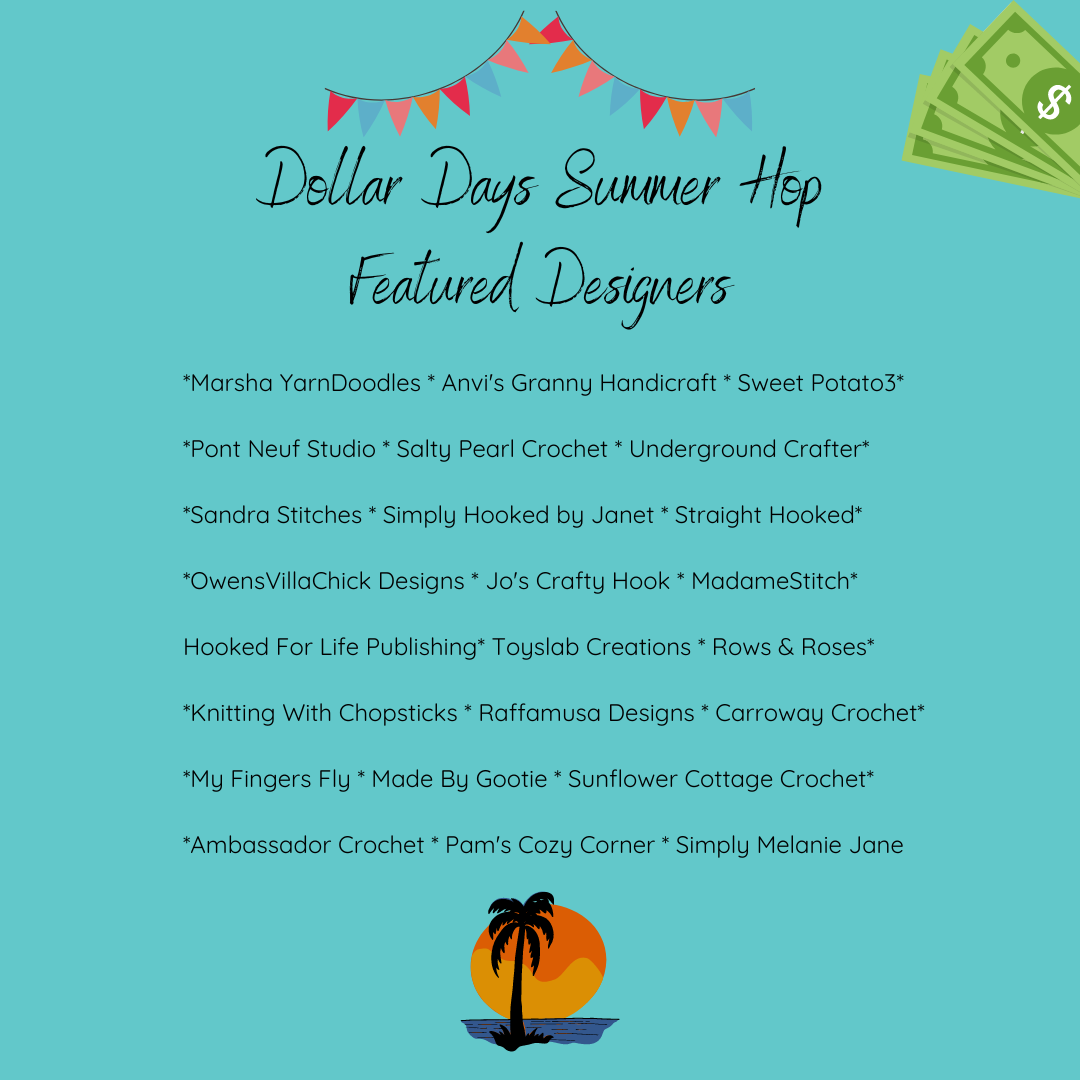 You can get the Layla Hairtie pattern as a $1 download for 24 hours on June 18th in the Dollar Days hop hosted by Simply Melanie Jane!!!