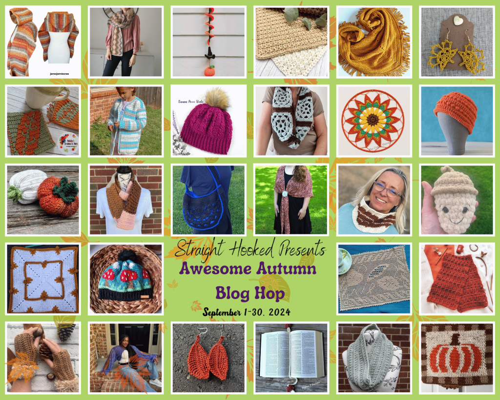 As part of the Awesome Autumn Blog Hop hosted by Straight Hooked, the Loopy Herringbone Pumpkin pattern will be 50% off on September 14th, 2024.