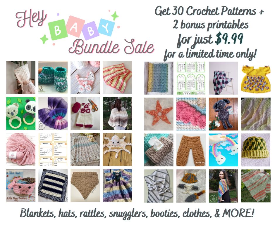 Click on the buttons below to go to the blog hop for the featured patterns or use my affiliate link button to purchase the Hey Baby Bundle!