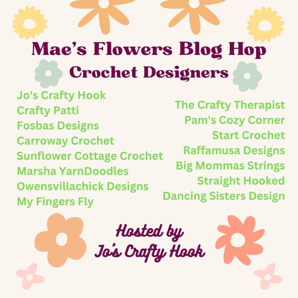 I will be joining 14 fabulous designers in Mae’s Flowers Blog Hop hosted by Jo’s Crafty Hook! So many lovely patterns are ready to jump onto your hooks this month!