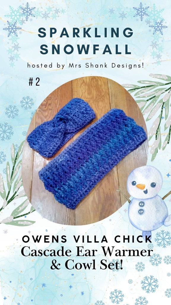 On December 2nd, you can get my Cascade Ear Warmer and Cowl pattern 50%! To take advantage of the discount and get my featured pattern in the Sparkling Snowfall Blog Hop, go to this page to retrieve the coupon code for 50% off the PDF pattern. Click on the link provided which will bring you to my Ravelry store.