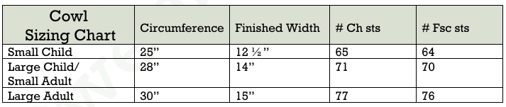 You will find the free instructions below for the Adult Small Cascade Cowl! The Cascade pattern pdf includes the ear warmer in sizes Toddler-Adult Large (19″-24″) and the cowl in sizes Small Child-Adult Large (25″-30″). You can purchase the pdf in my Ravelry store!