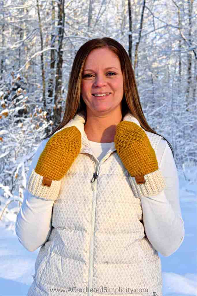 The Chevron Peaks Crochet Mittens are a simple one piece crochet mitten pattern, but I made mine with two colors. They also have a stretchy, ribbed fold over cuff that is perfect for keeping the snow out!