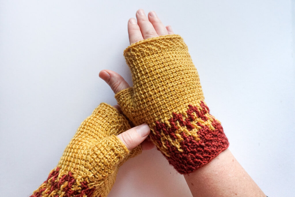 7. The Easy Tunisian Mittens Pattern by Knitter Knotter