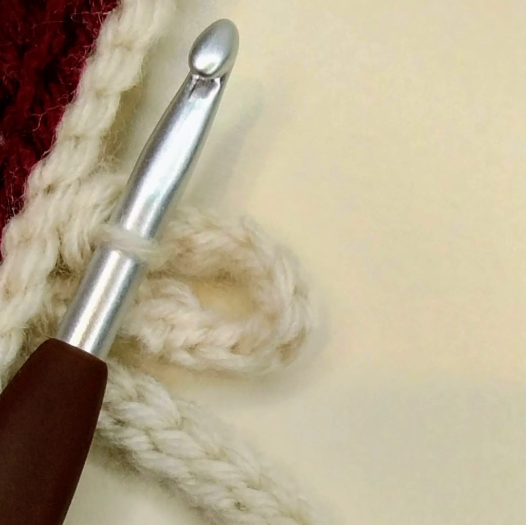 Step 5: Slip stitch into bottom loop of next stitch and pull through all layers on hook.