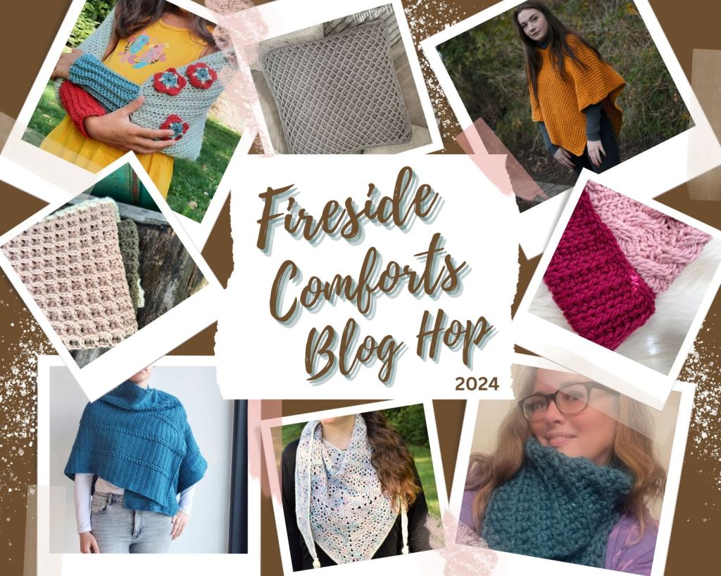 The Hygge Lap Blanket is being featured in the Fireside Comforts Blog Hop’ hosted by Ambassador Crochet. It will be available as a free download on October 12th, 2024.