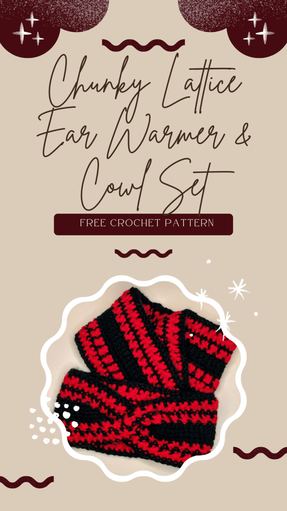 The Chunky Lattice Set includes both the Twisted Lattice Ear Warmer and the Chunky Lattice Cowl. These patterns feature the Tunisian simple stitch and crossed double crochet stitches. While the ear warmer is made flat and seamed together, the cowl is made in the round.