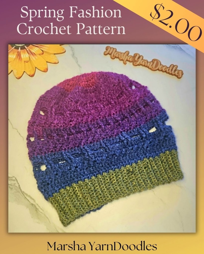 Marsha YarnDoodles is offering her Boho Slouch Hat.
