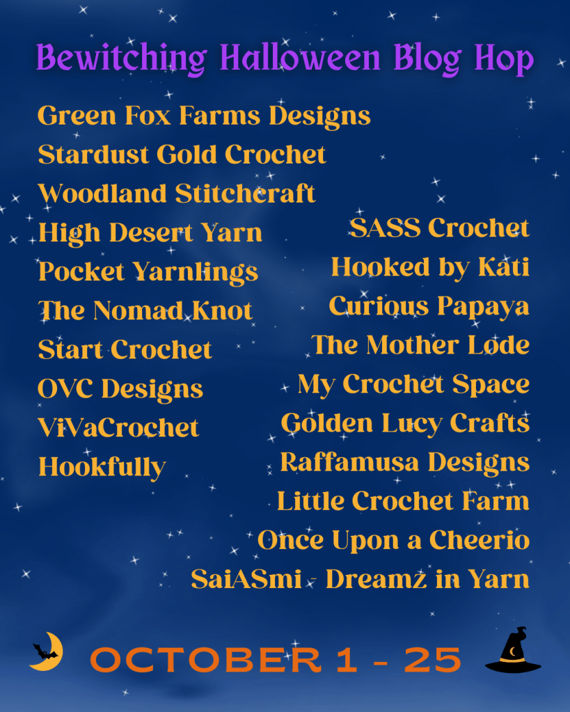 As part of the Bewitching Halloween Blog Hop Hosted by Green Fox Farms Designs, the Shroomie amigurumi pattern will be available is available as a free download on October 18th, 2025.
